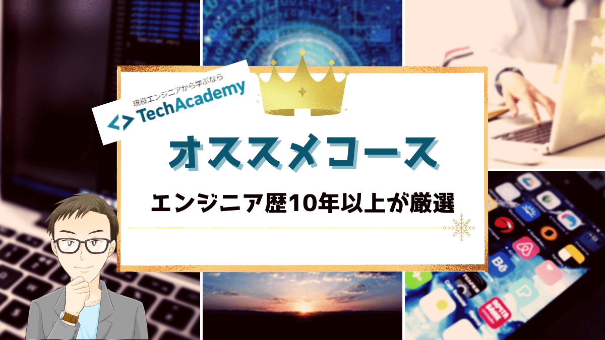 エンジニア10年以上の経験と徹底リサーチしたことにより、テックアカデミー(TechAcademy)のオススメコースを3つまで厳選しました。